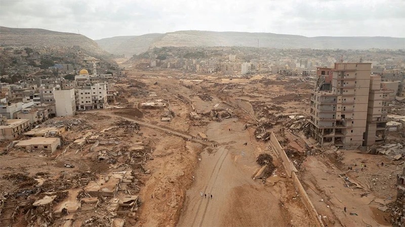 Lũ quét xảy ra khi Libya - quốc gia Bắc Phi bị chiến tranh tàn phá - hứng chịu cơn bão mạnh Daniel hôm 10/9. Nước dâng nhanh làm vỡ 2 con đập đầu nguồn ở thành phố duyên hải Derna, miền đông Libya. Nước tràn ra xối xả trong đêm, ập xuống trung tâm thành phố có 100.000 dân và cuốn trôi toàn bộ khu dân cư ra Địa Trung Hải.