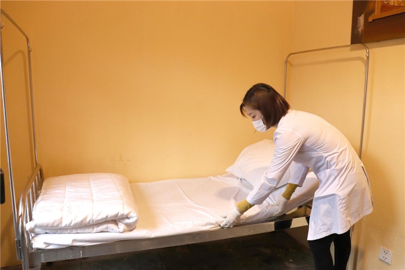 Nhân viên y tế tại Khu di tích và danh thắng Yên Tử chuẩn bị phòng cách ly cho những trường hợp nghi nhiễm khi phát hiện.