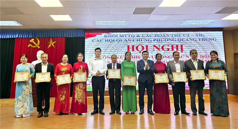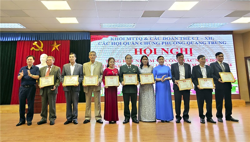 Hội nghị cũng tổ chức biểu dương, khen thưởng cho các tập thể và cá nhân trong Khối MTTQ và các đoàn thể chính trị xã hội phường Quang Trung vì những thành tích xuất sắc đạt được trong năm 2023.