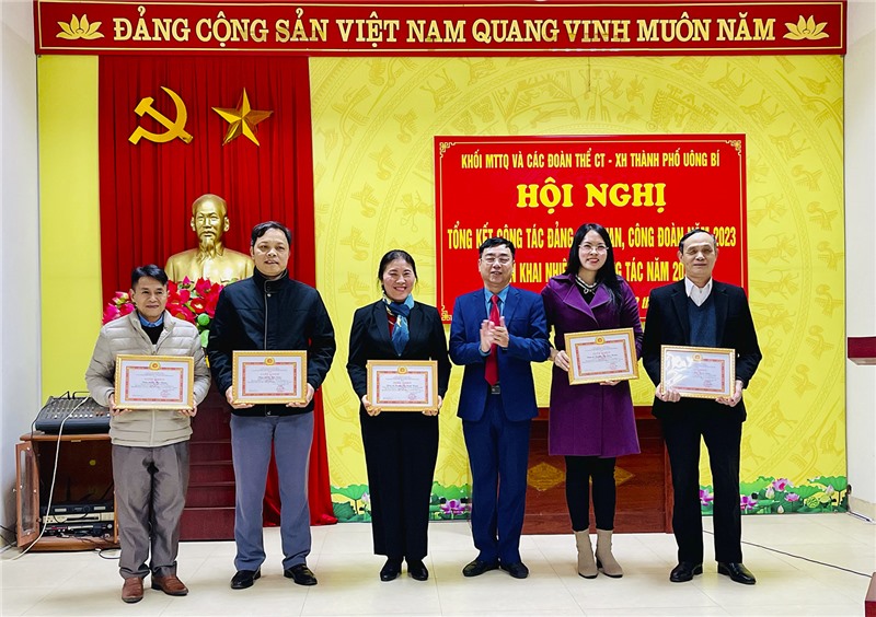 Nhân dịp này, Khối MTTQ và các đoàn thể CT-XH thành phố đã khen thưởng các tập thể, cá nhân có thành tích xuất sắc trong thực hiện nhiệm vụ công tác Đảng, tham mưu, giúp việc và công đoàn năm 2023; phát động phong trào thi đua năm 2024.