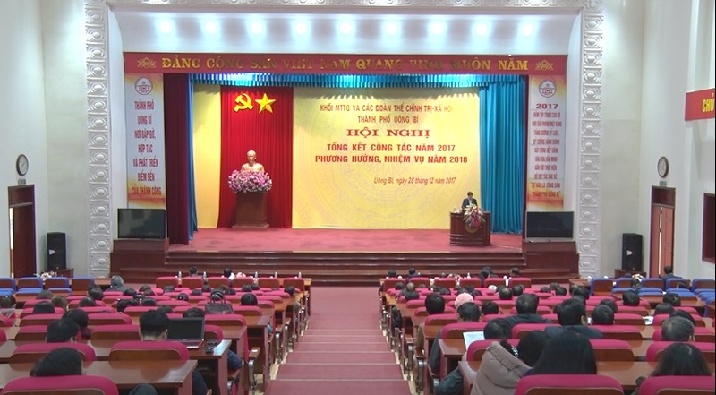 Ngày 28-12, Khối MTTQ và các đoàn thể chính trị - xã hội thành phố tiến hành tổng kết công tác năm 2017, triển khai nhiệm vụ năm 2018. Dự hội nghị có đồng chí Lại Văn Chiến, Phó Chủ tịch LĐLĐ tỉnh; đồng chí Hoàng Thị Hà, Phó Bí thư thường trực Thành ủy; đồng chí Phạm Tuấn Đạt, Ủy viên BTV Thành ủy, Phó Chủ tịch Ủy ban nhân dân thành phố.