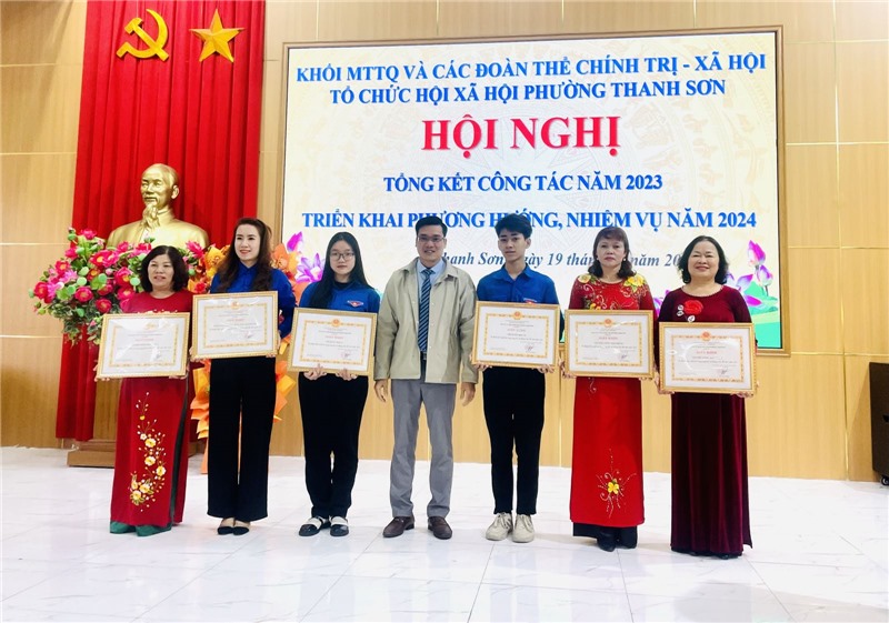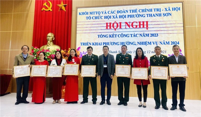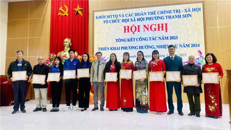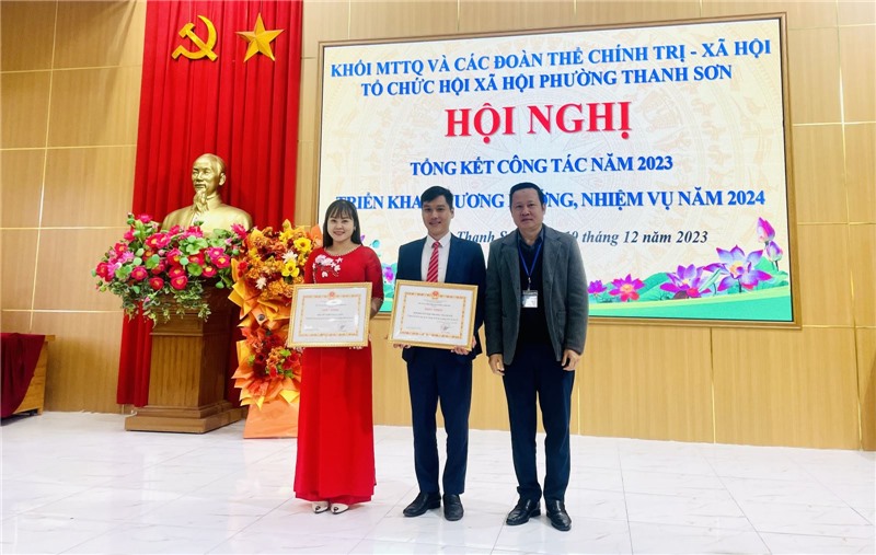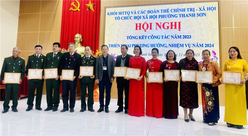 Tại hội nghị, nhiều tập thể, cá nhân Khối MTTQ và các đoàn thể chính trị - xã hội, tổ chức xã hội phường Thanh Sơn đã được biểu dương, khen thưởng vì đã có thành tích xuất sắc trong công tác năm 2023.