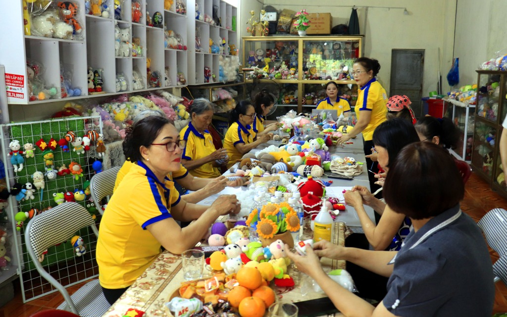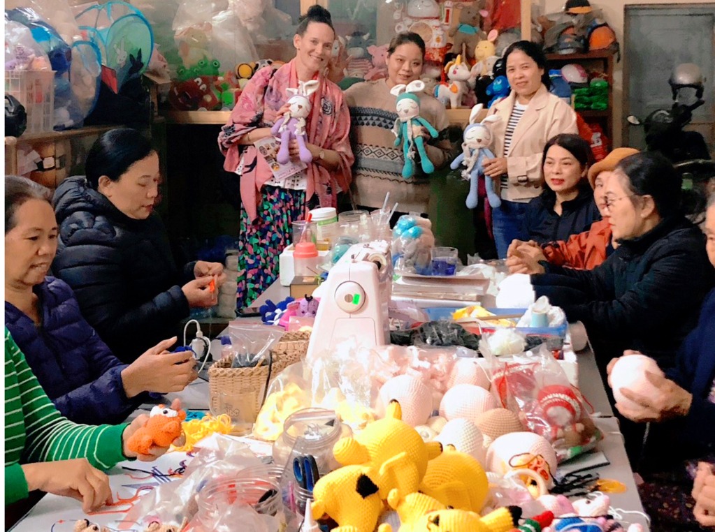 Các thành viên Công ty TNHH Thương mại L&T Crochet tham gia sản xuất sản phẩm len móc thủ công.