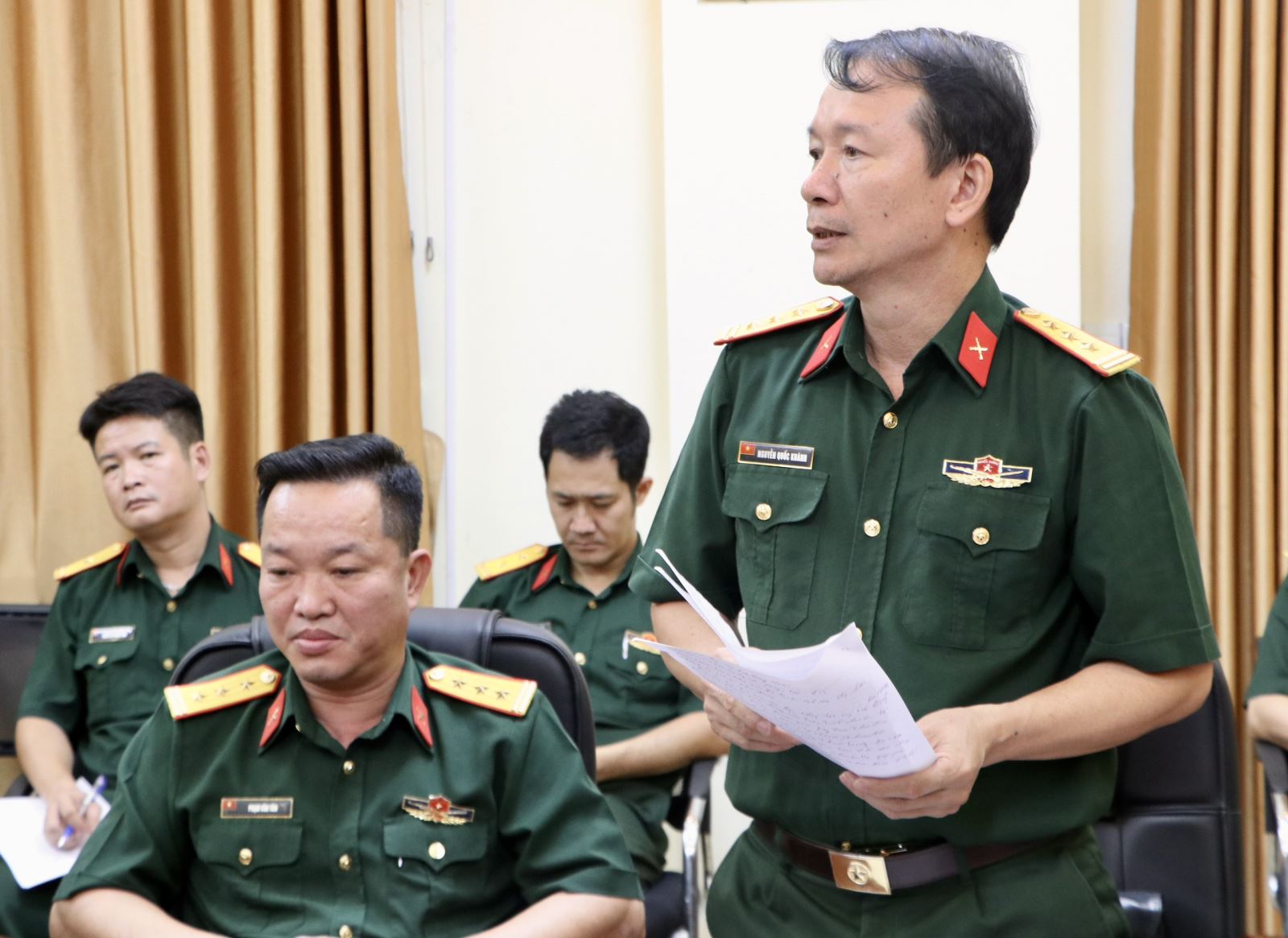 Đại tá Nguyễn Quang Hiến, Phó Bí thư Thường trực Đảng ủy, Chính ủy Bộ CHQS tỉnh phát biểu chỉ đạo.