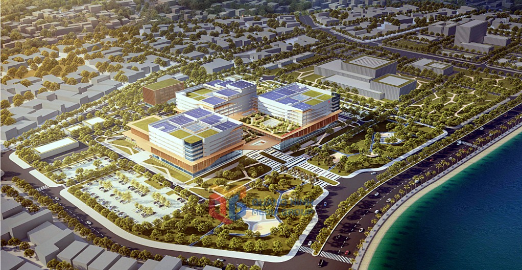 Dự kiến phối cảnh tổng thể dự án Bệnh viện Đa khoa tỉnh và các cơ sở y tế, giáo dục chất lượng cao tại khu vực Nam Cầu Trắng. Ảnh Minh Hà