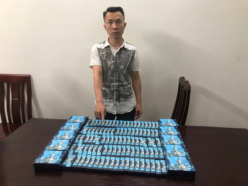 Tang vật thu giữ gồm 100 sản phẩm thuốc lá điện tử có chứa chất ma túy MDMB-4en-PINACA.