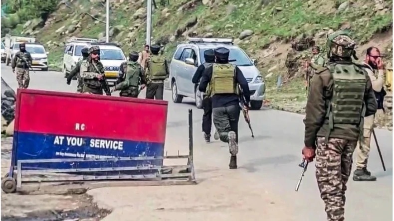 Lực lượng an ninh Ấn Độ được triển khai tại hiện trường vụ khách du lịch bị tấn công ở Pahalgam, Jammu và Kashmir, ngày 22/4/2025. (Ảnh: ANI/TTXVN)