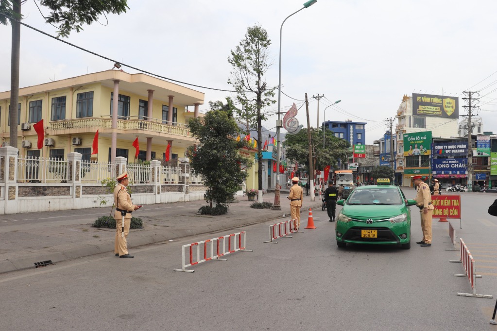 Lực lượng CSGT Công an TP Cẩm Phả kiểm tra nồng độ cồn đối với người điều khiển phương tiện tham gia giao thông dịp Tết Nguyên đán Ất Tỵ 2025.