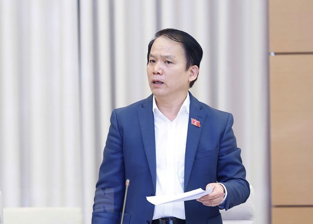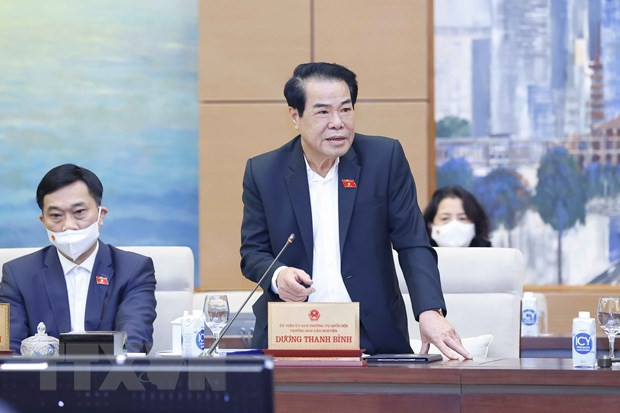 Trưởng Ban Dân nguyện thuộc Ủy ban Thường vụ Quốc hội Dương Thanh Bình trình bày báo cáo. (Ảnh: Doãn Tấn/TTXVN)