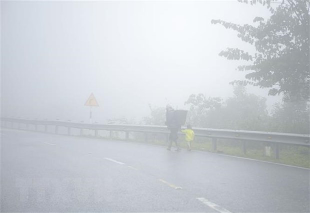 Trời rét kèm theo sương mù bao phủ trên các vùng núi cao Điện Biên. (Ảnh: Xuân Tư/TTXVN)