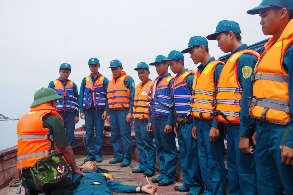 Ban CHQS TP Cẩm Phả huấn luyện, diễn tập cứu hộ cứu nạn trên biển. (Ảnh đơn vị cung cấp)