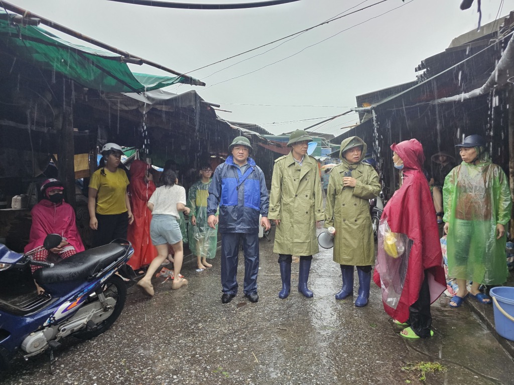 Lãnh đạo TP Uông Bí kiểm tra tình trạng ngập úng tại Chợ Trung tâm trong trận mưa ngày 9/6 vừa qua. Ảnh: Mai Hương (CTV)