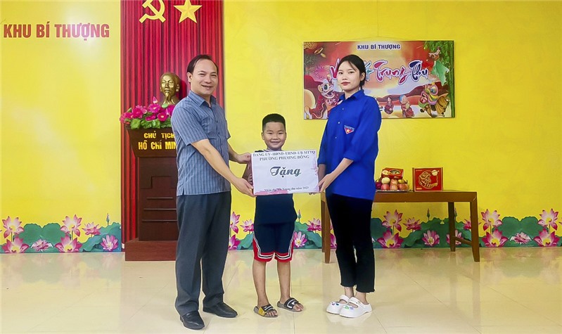 Lãnh đạo UBND phường Phương Đông trao quà Tết Trung thu cho thiếu niên, nhi đồng khu Bí Thượng.