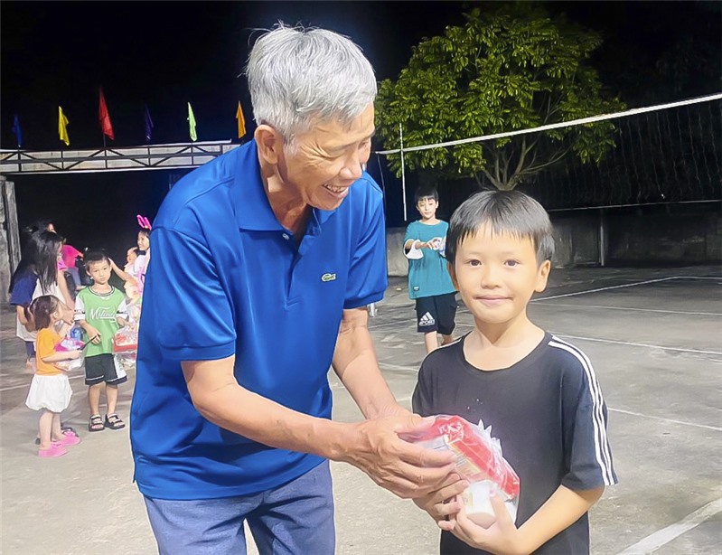 Bí thư chi bộ, Trưởng khu Bí Thượng phát quà Tết Trung thu cho các em thiếu nhi.