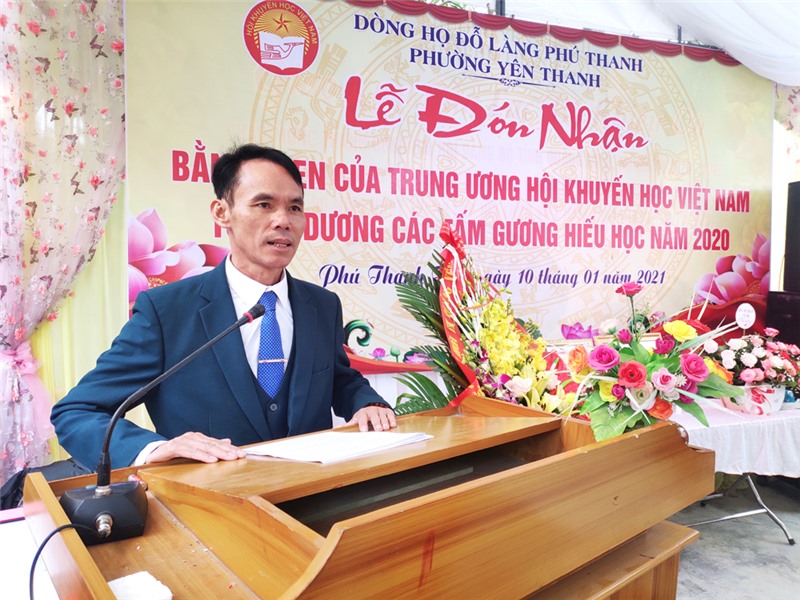 Ngày 10-1, dòng họ Đỗ, khu Phú Thanh Tây đã long trọng tổ chức lễ đón nhận bằng khen của Trung ương hội Khuyến học Việt Nam, tuyên dương các tấm gương hiếu học năm 2020. Dự buổi lễ có bà Hoàng Minh Chiến, Chủ tịch Hội khuyến học thành phố Uông Bí, lãnh đạo phường Yên Thanh.
