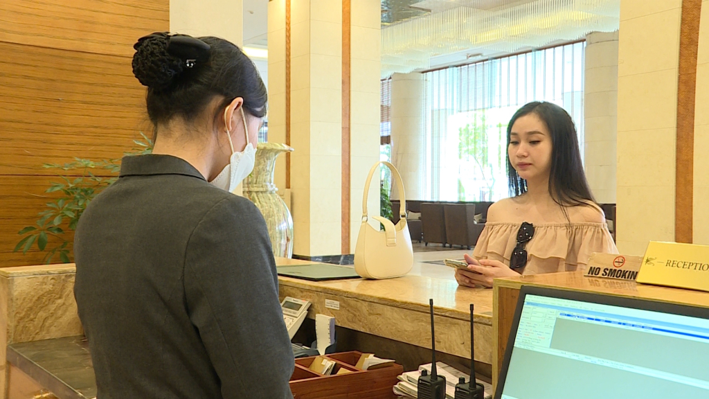 Du khách làm thủ tục nhận phòng tại Khách sạn Mường Thanh Quảng Ninh.