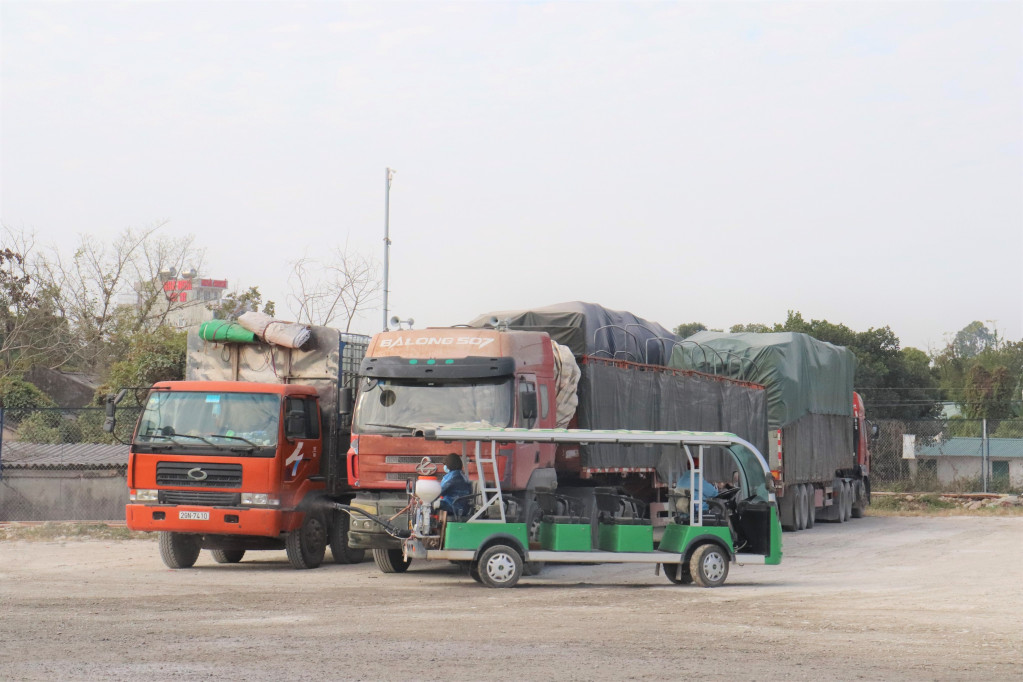 Phun khử khuẩn cho xe hàng để phòng, chống dịch Covid-19 tại cửa khẩu Bắc Luân II (TP Móng Cái)