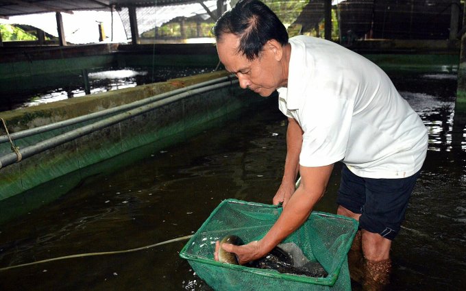 Ông Út kết hợp nuôi cá bằng thức ăn công nghiệp và cá rô phi cắt nhỏ. Sau khi nuôi một năm rưỡi, cá đạt trọng lượng khoảng 20 con mỗi kg trở lên, người nuôi có thể cho cá ăn hoàn toàn bằng cá rô phi. Việc này giúp tiết kiệm chi phí bởi đây là loại cá có nhiều ở địa phương với giá khá rẻ.