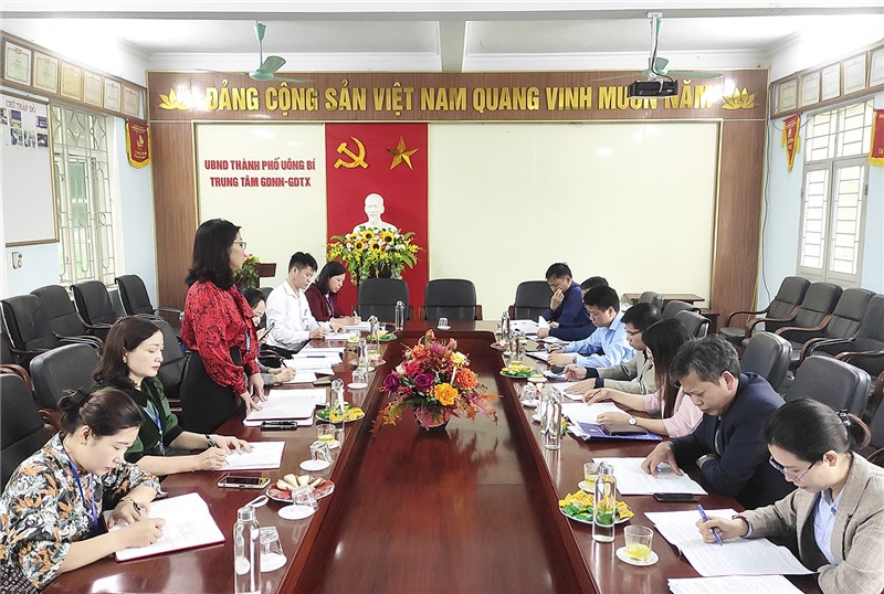 Đoàn kiểm tra làm việc tại trung tâm GDNN & GDTX.