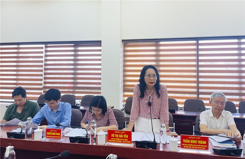 Đồng chí Vũ Thị Hải Yến, Phó Vụ trưởng Vụ Tài chính hành chính sự nghiệp, Bộ Tài chính phát biểu tại buổi làm việc.