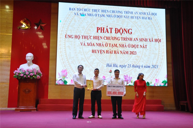 Các tổ chức, doanh nghiệp, nhà hảo tâm ủng hộ kinh phí tại lễ phát động ủng hộ xóa nhà tạm, nhà dột nát trên địa bàn huyện Hải Hà.