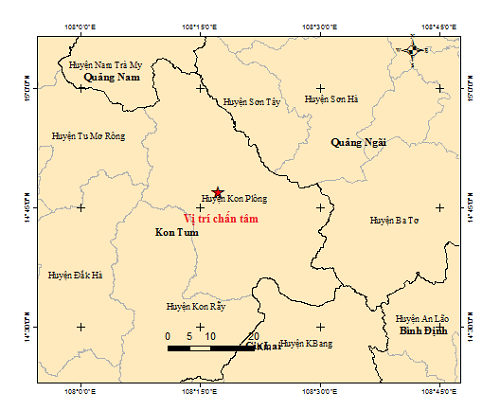 Vị trí xảy ra 3 trận động đất liên tiếp sáng nay tại Kon Tum.