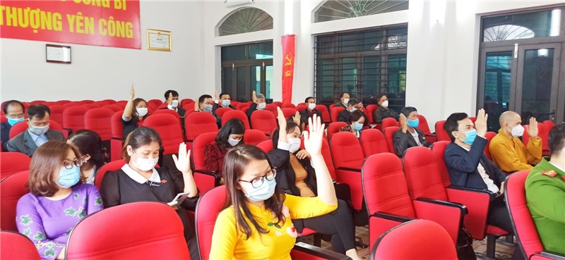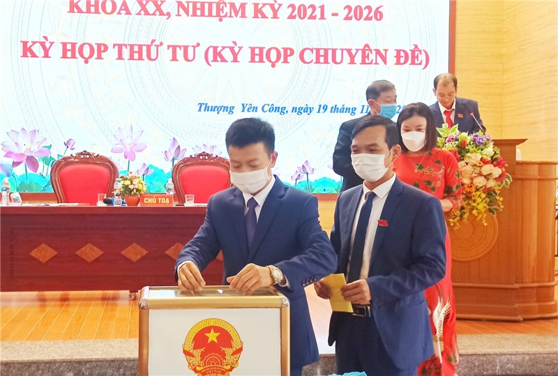Kỳ họp cũng thông qua tờ trình về giới thiệu nhân sự, thực hiện qui trình bầu bổ sung chức danh Phó Chủ tịch UBND xã khóa XX đối với đồng chí Lê Tuấn Vinh. Kết quả, đồng chí Lê Tuấn Vinh trúng cử chức danh Phó Chủ tịch UBND xã Thượng Yên Công với số phiếu đạt 100%.