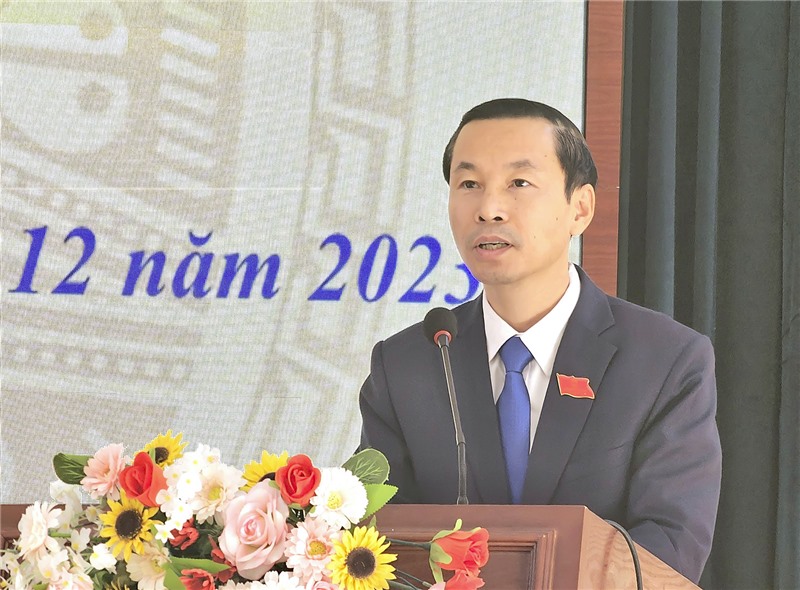 Đồng chí Hoàng Quốc Trung - Uỷ viên BTV, Trưởng ban Tuyên giáo Thành uỷ, Giám đốc Trung tâm Chính trị Thành phố báo cáo kết quả Kỳ họp thứ 15, HĐND Thành phố khoá XX, nhiệm kỳ 2021-2026.