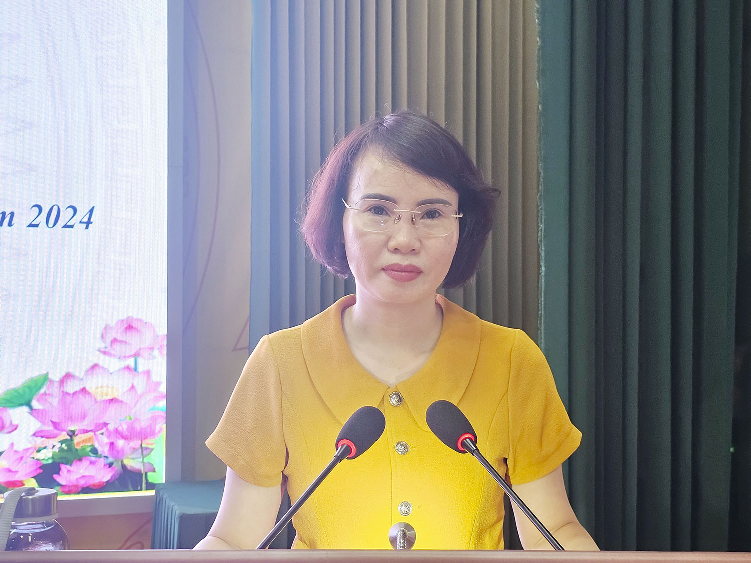 Đồng chí Trần Thị Hường, Phó Bí thư Đảng ủy, Chủ tịch UBND phường phát biểu tại kỳ họp.
