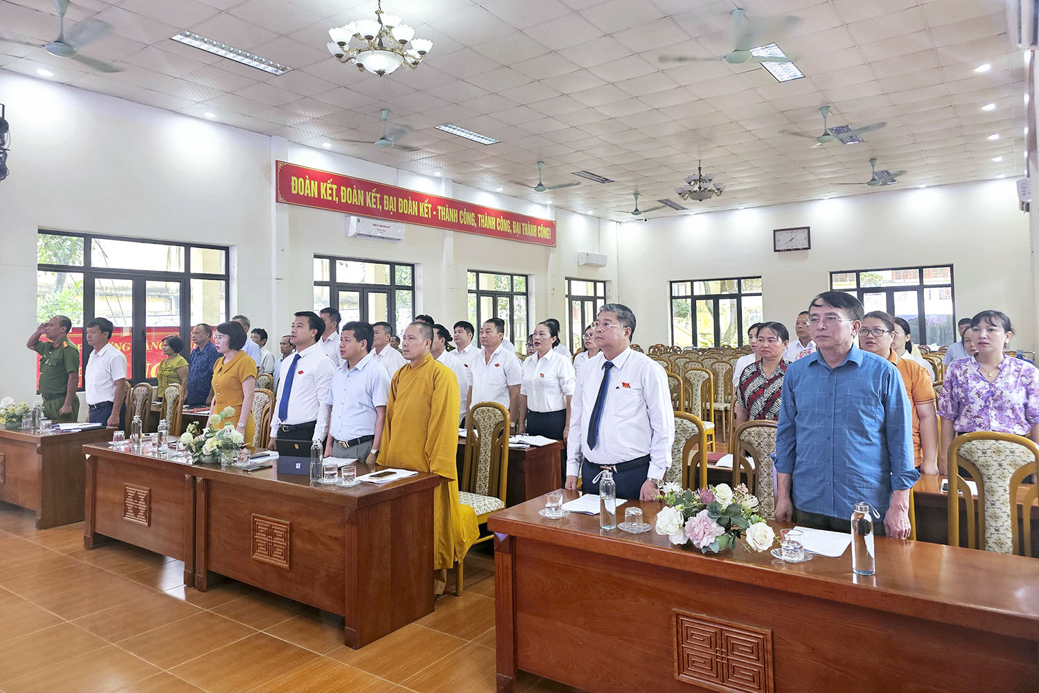 Các đại biểu thực hiện nghi lễ chào cờ tại kỳ họp.
