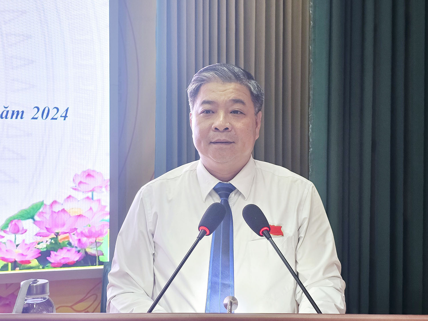 Đồng chí Phan Minh Toàn, Thành ủy viên, Bí thư Đảng ủy phường phát biểu tại kỳ họp.