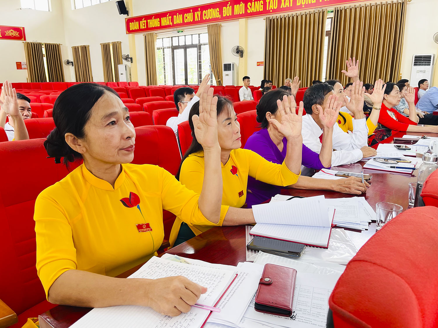 Các đại biểu biểu quyết thông qua các Nghị quyết của Kỳ họp.