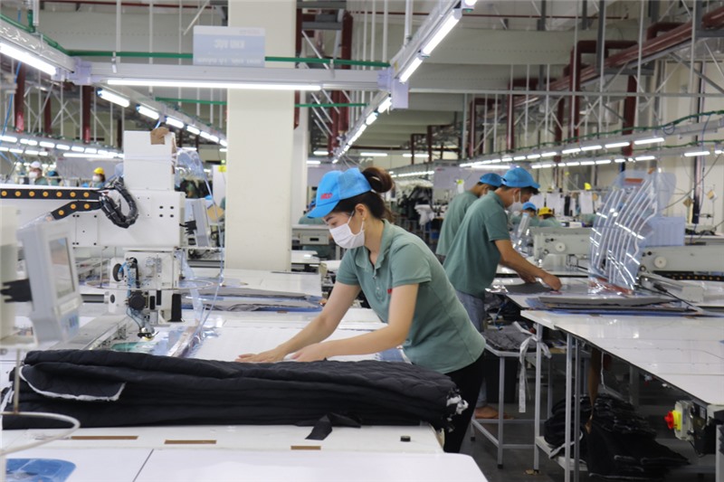 Công nhân làm việc tại Nhà máy may mặc Hoa Lợi Đạt ở KCN Cảng biển Hải Hà.