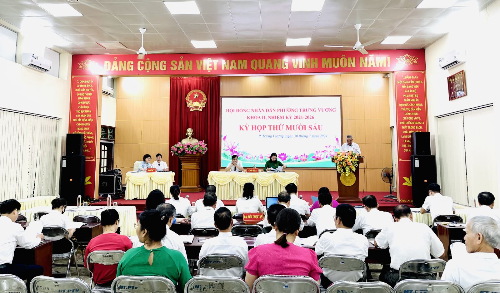Ngày 30/7, HĐND phường Trưng Vương khóa II, nhiệm kỳ 2021-2026 tổ chức kỳ họp thứ 16. Dự kỳ họp có đồng chí Phạm Thị Thuý, Trưởng Phòng Tư pháp, Đại biểu HĐND thành phố.