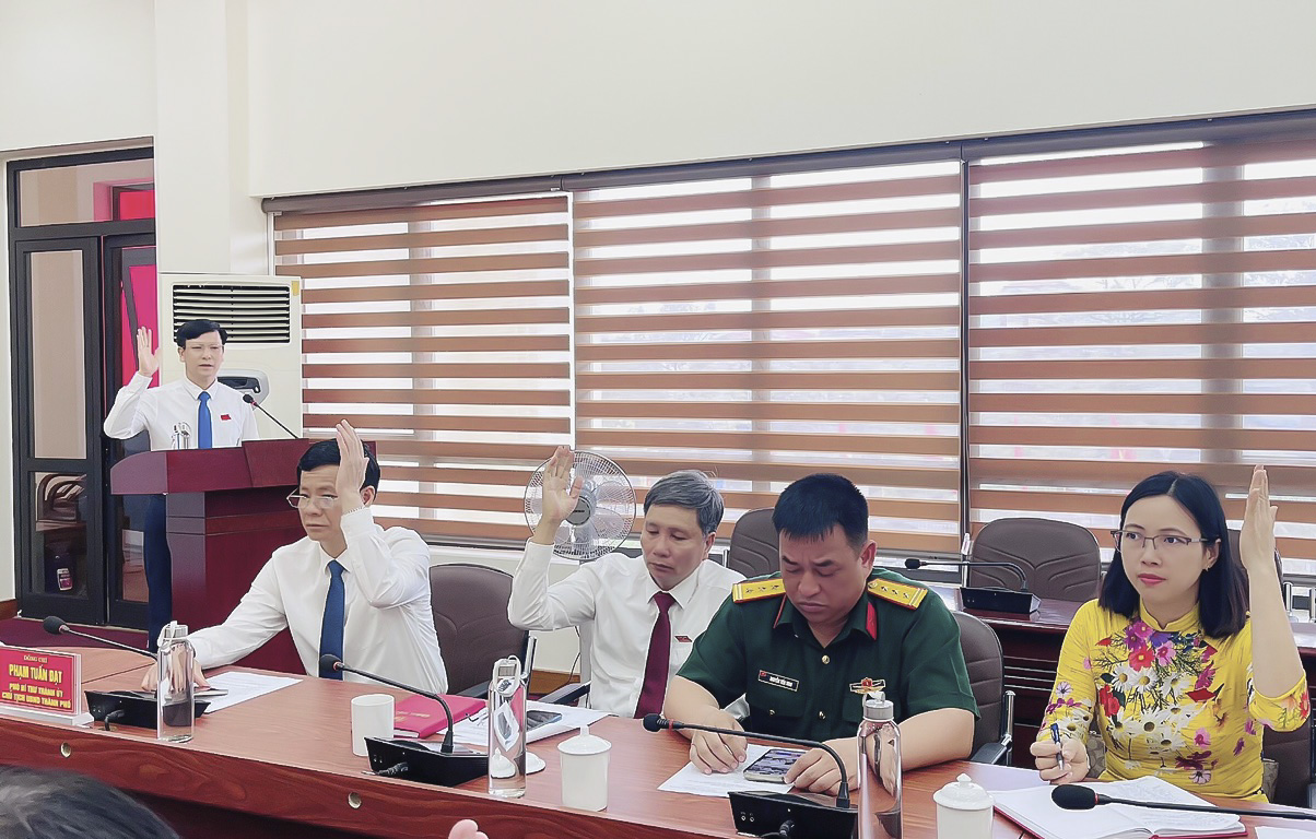 Đồng chí Đỗ Trường Sơn, UVBTV Thành ủy, Phó Chủ tịch HĐND thành phố thông qua các nội dung tờ trình.