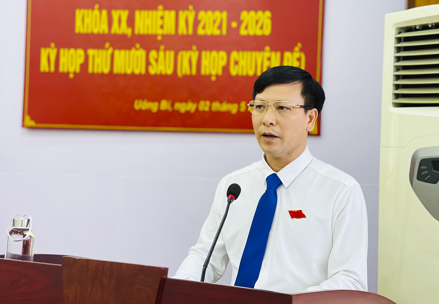 Chiều ngày 02/05, HĐND thành phố Uông Bí khóa XX, nhiệm kỳ 2021 - 2026 tổ chức Kỳ họp thứ 16, kỳ họp chuyên đề để quyết nghị một số nội dung liên quan đến công tác cán bộ theo thẩm quyền. Dự kỳ họp có đồng chí Mai Vũ Tuấn, Ủy viên BCH Đảng bộ tỉnh, Bí thư Thành ủy Uông Bí; đồng chí Nguyễn Chiến Thắng, Phó Bí thư Thường trực Thành ủy; Phạm Tuấn Đạt, Phó Bí thư Thành ủy, Chủ tịch UBND thành phố.