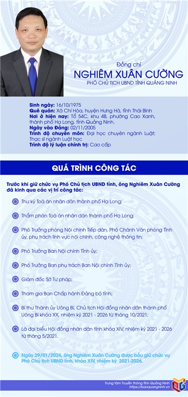 Trước đó, thực hiện Quy định số 80-QĐ/TW ngày 18/8/2022 của Bộ Chính trị về phân cấp quản lý cán bộ và bổ nhiệm, giới thiệu cán bộ ứng cử, BTV Tỉnh ủy Quảng Ninh đã thực hiện quy trình giới thiệu nhân sự 5 bước. Tại các hội nghị, 100% đại biểu triệu tập có mặt đều thống nhất giới thiệu đồng chí Nghiêm Xuân Cường, Ủy viên BCH Đảng bộ tỉnh, đại biểu HĐND tỉnh, Bí thư Thành ủy, Chủ tịch HĐND TP Uông Bí bầu giữ chức vụ Phó Chủ tịch UBND tỉnh Quảng Ninh, nhiệm kỳ 2021-2026.