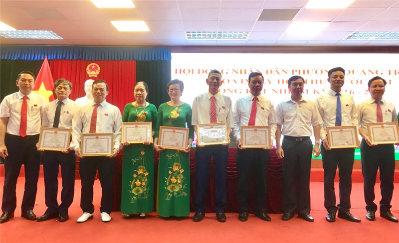 Tại kỳ họp, UBND phường Quang Trung đã khen thưởng 2 tập thể và 11 cá nhân có thành tích xuất sắc trong hoạt động của HĐND phường khóa IX, nhiệm kỳ 2016-2021.
