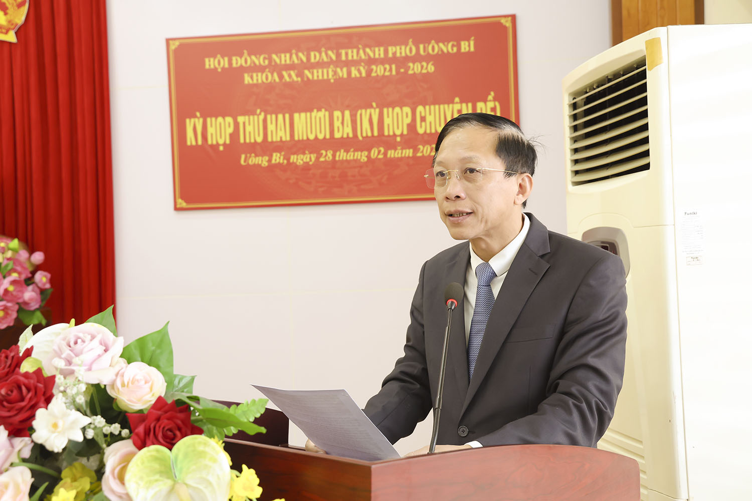 Tại kỳ họp, đồng chí Phạm Tuấn Đạt, Phó Bí thư Thành ủy, Chủ tịch UBND thành phố đã thông qua tờ trình về việc ban hành Nghị quyết thành lập, tổ chức lại các phòng ban chuyên môn trực thuộc UBND thành phố Uông Bí. Theo đó có 4 cơ quan chuyên môn được thành lập và 3 cơ quan được tổ chức lại.