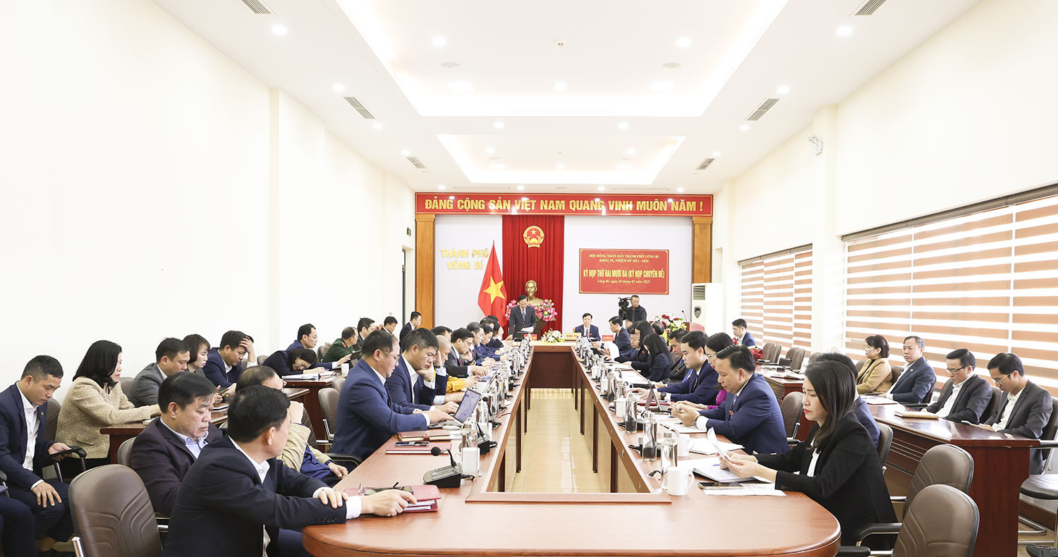Đồng chí Nguyễn Chiến Thắng, Phó Bí thư Thường trực Thành ủy, Chủ tịch HĐND thành phố; đồng chí Đỗ Trường Sơn, Phó Chủ tịch HĐND thành phố chủ trì hội nghị. Cùng dự kỳ họp có lãnh đạo UBND, các phòng ban ngành chức năng thành phố, các đơn vị xã phường trên địa bàn.