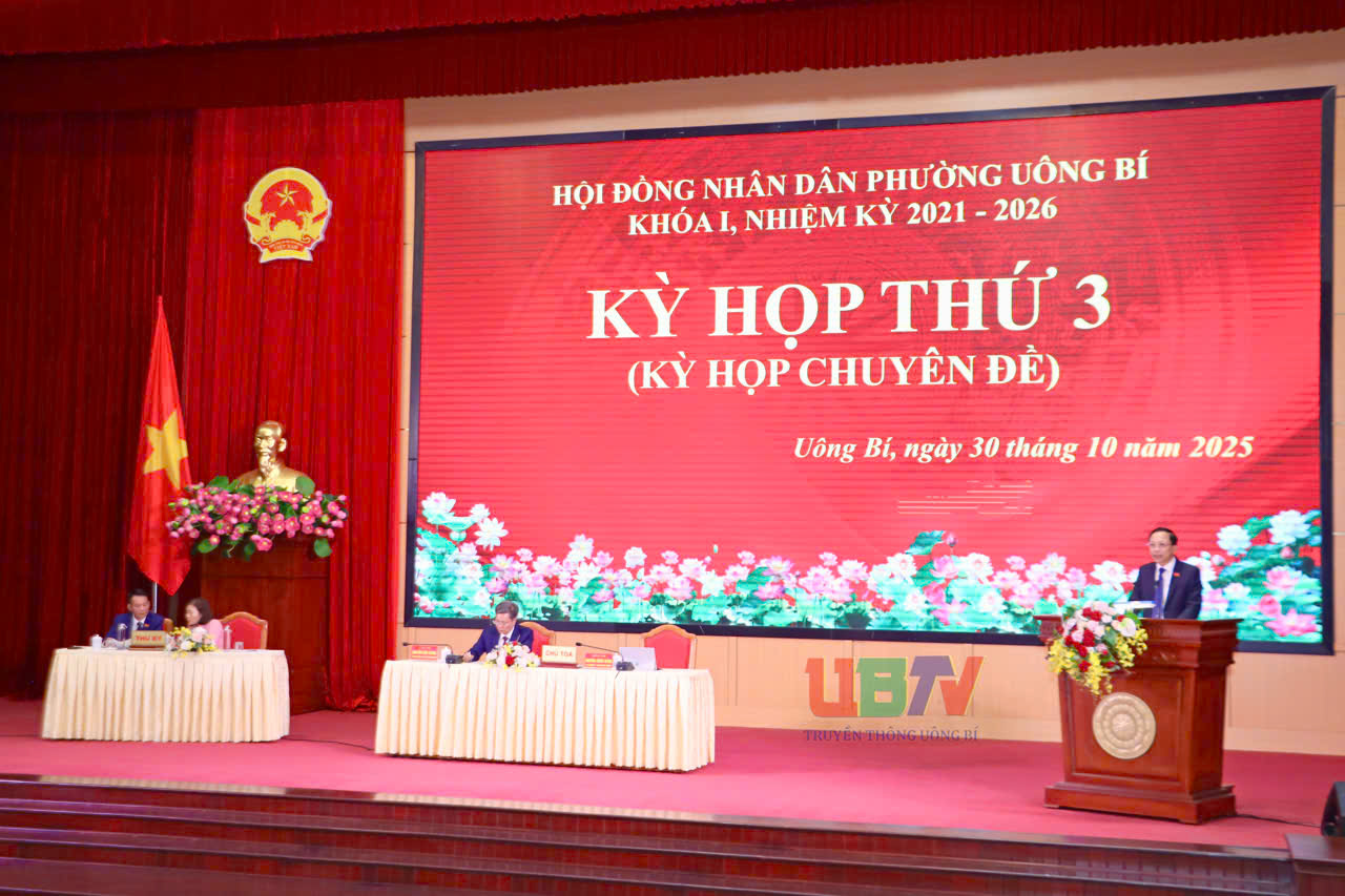 Chiều 30/10, HĐND phường Uông Bí khóa I, nhiệm kỳ 2021-2026 tổ chức kỳ họp thứ 3 (kỳ họp chuyên đề) để xem xét và quyết nghị một số nội dung quan trọng thuộc thẩm quyền.