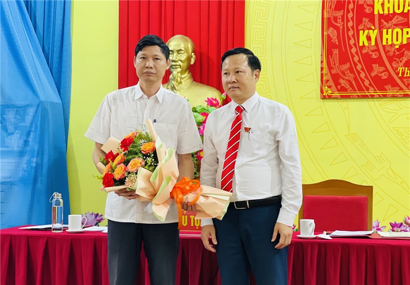 Lãnh đạo phường tặng hoa chúc mừng đồng chí Nguyễn Đổng Chi, Phó Chủ tịch UBND phường Thanh Sơn.