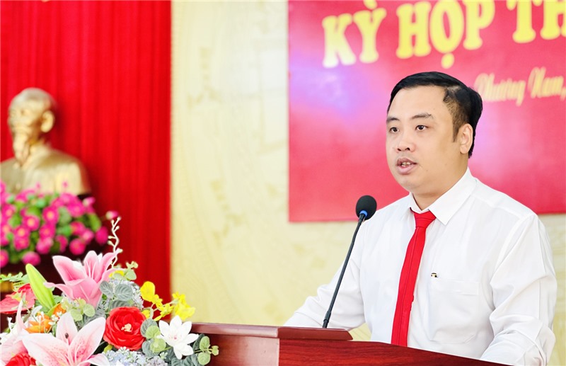 Lãnh đạo UBND phường Phương Nam báo cáo kết quả phát triển kinh tế - xã hội trên địa bàn.