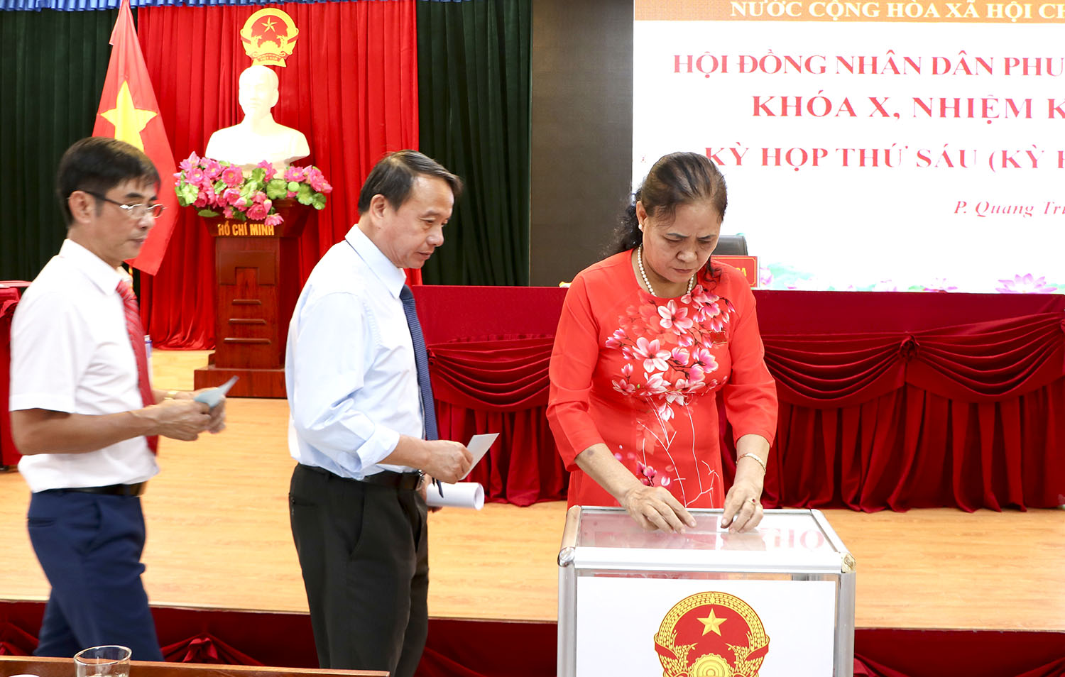 Đại biểu HĐND phường bỏ phiếu bầu bổ sung chức danh Chủ tịch HĐND phường Quang Trung khoá X.