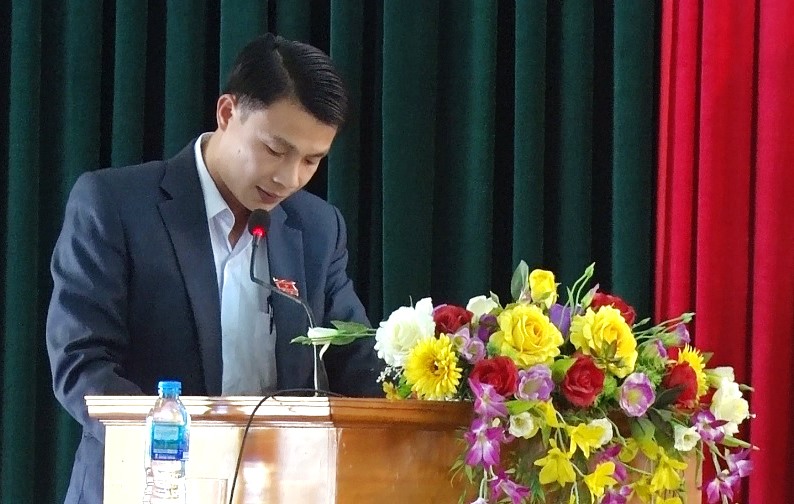Đồng chí Nguyễn Hồng Quảng, Phó Chủ tịch UBND phường trình bày báo cáo kinh tế - xã hội năm 2018.