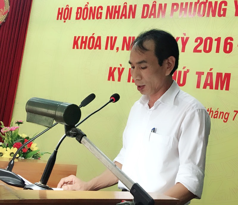 Đồng chí Hoàng Trọng Hiếu - Phó Chủ tịch UBND phường báo cáo tại kỳ họp.