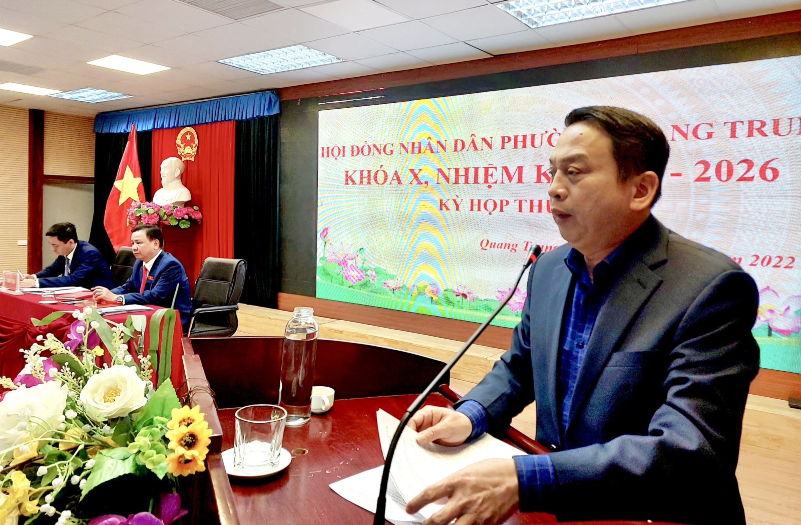 Đồng chí Bí thư Đảng ủy phường phát biểu tại kỳ họp.