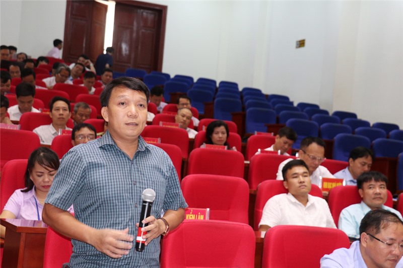 Lãnh đạo phòng kinh tế thành phố phát biểu thảo luận tại hội trường.