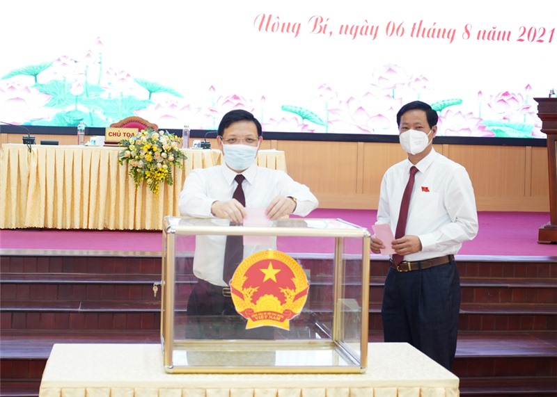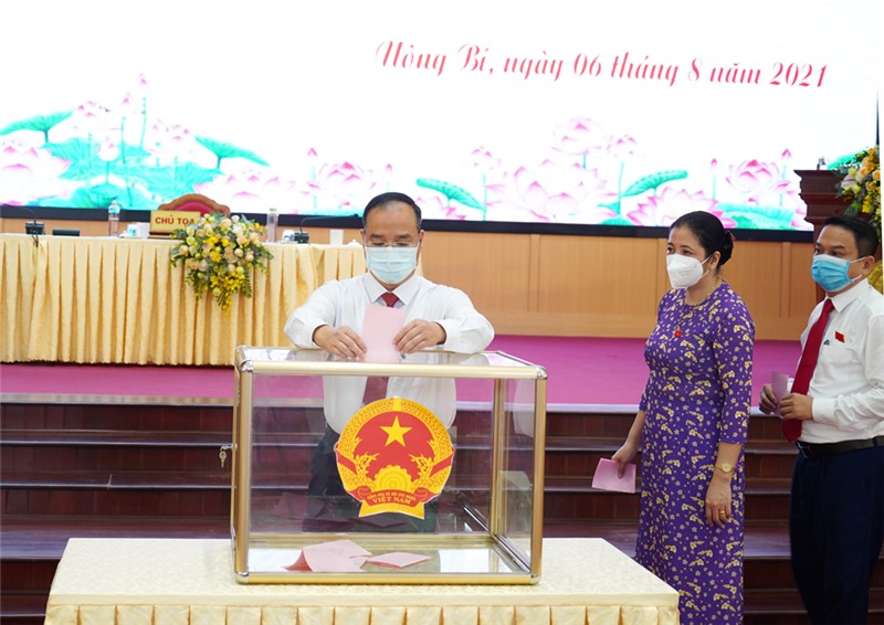 Các đại biểu bỏ phiếu bầu bổ sung chức danh Chủ tịch UBND thành phố khóa XX, nhiệm kỳ 2021-2026.