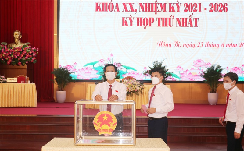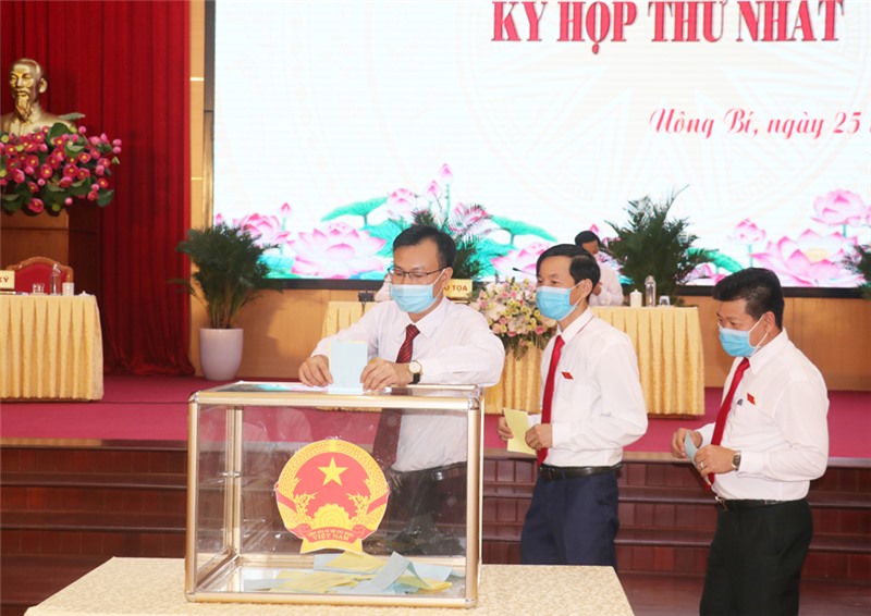 Tại kỳ họp, các đại biểu HĐND thành phố bỏ phiếu bầu các chức danh chủ chốt HĐND, UBND thành phố nhiệm kỳ 2021-2026.